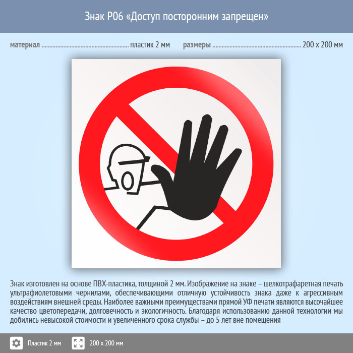 Знак P06 «Доступ посторонним запрещен» (пластик, 200х200 мм) в Ачинске купить