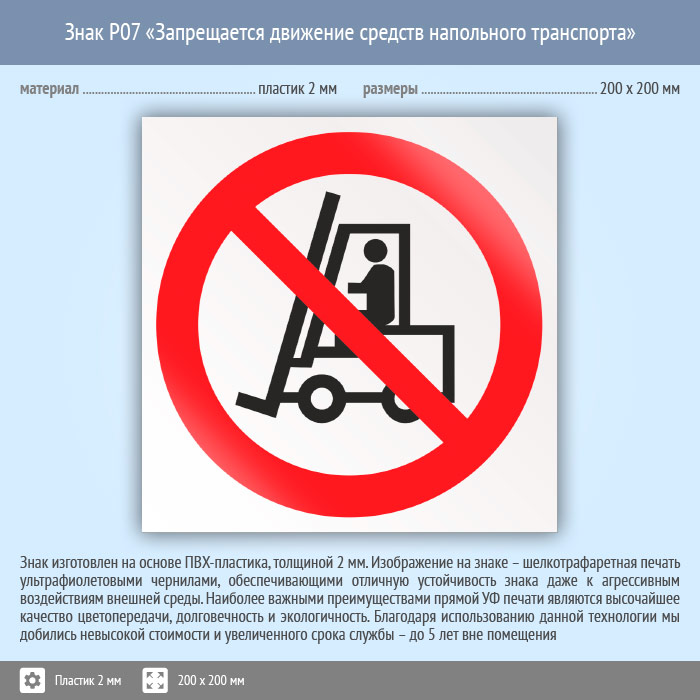 Знак P07 «Запрещается движение средств напольного транспорта» (пластик, 200х200 мм) в Ачинске купить