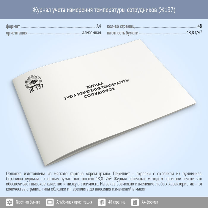 Журнал учета измерения температуры сотрудников (48 стр., Ж137) в Ачинске купить