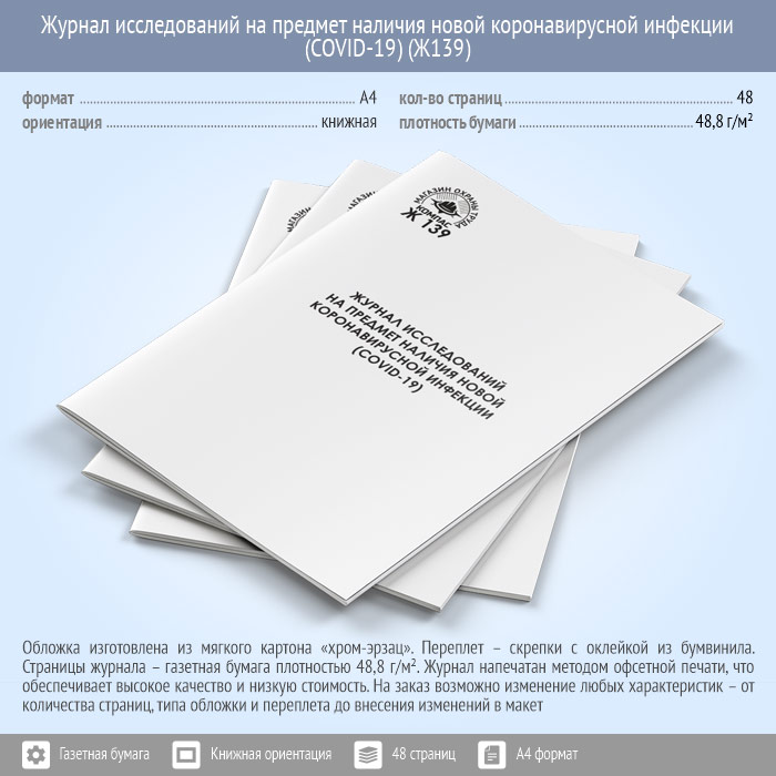 Журнал исследований на предмет наличия новой коронавирусной инфекции (COVID-19) (48 стр., Ж139) в Ачинске купить