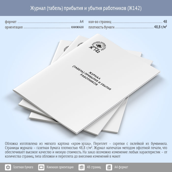 Журнал (табель) прибытия и убытия работников (48 стр., Ж142) в Ачинске купить