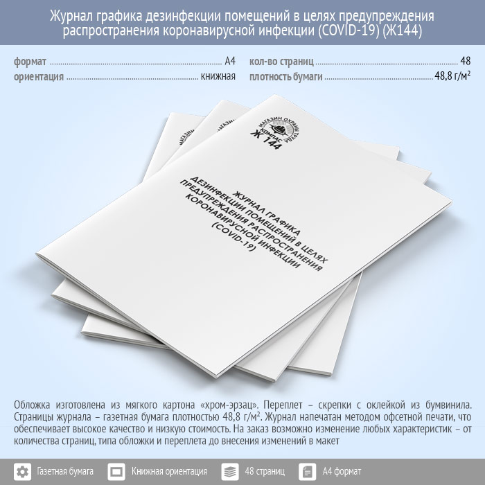Журнал графика дезинфекции помещений в целях предупреждения распространения коронавирусной инфекции (COVID-19) (48 стр., Ж144) в Ачинске купить