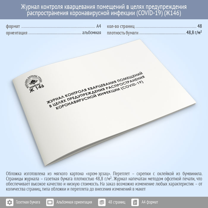 Журнал контроля кварцевания помещений в целях предупреждения распространения коронавирусной инфекции (COVID-19) (48 стр., Ж146) в Ачинске купить
