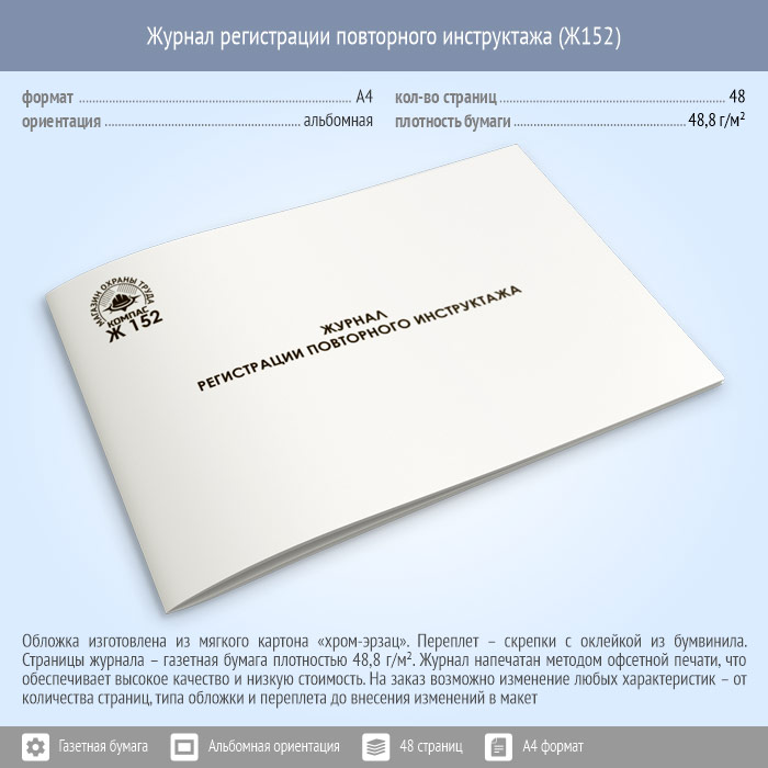Журнал регистрации повторного инструктажа (48 стр., Ж152) в Ачинске купить