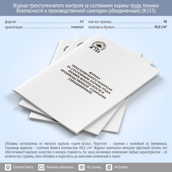 Журнал трехступенчатого контроля за состоянием охраны труда, техники безопасности и производственной санитарии (объединенный) (48 стр., Ж153) в Ачинске купить