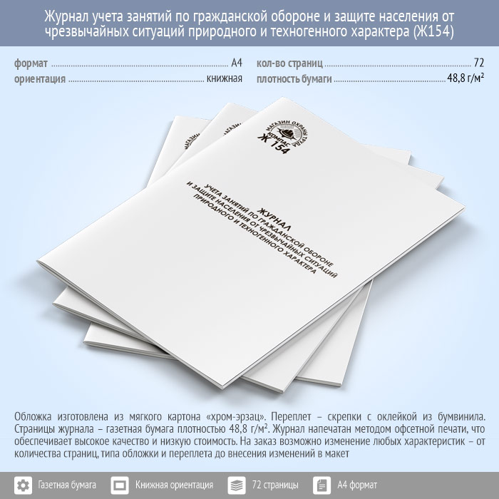 Журнал учета занятий по гражданской обороне и защите населения от чрезвычайных ситуаций природного и техногенного характера (72 стр., Ж154) в Ачинске купить