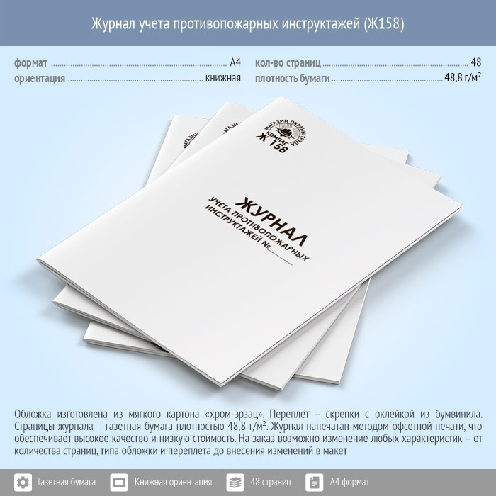 Журнал учета противопожарных инструктажей (48 стр., Ж158) в Ачинске купить