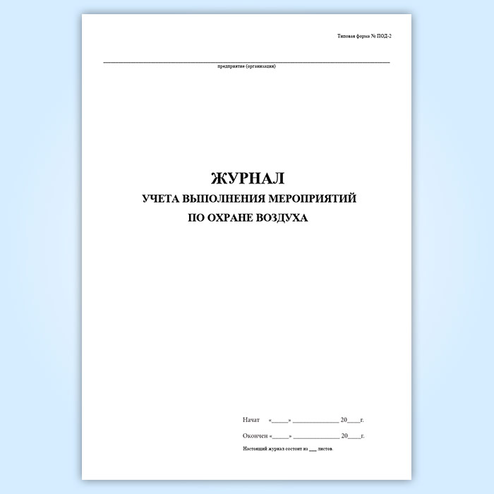 Журнал учета выполнения мероприятий по охране воздуха (форма ПОД-2) в Ачинске купить