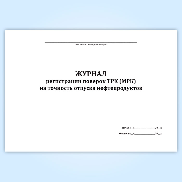 Журнал регистрации поверок ТРК (МРК) на точность отпуска нефтепродуктов в Ачинске купить