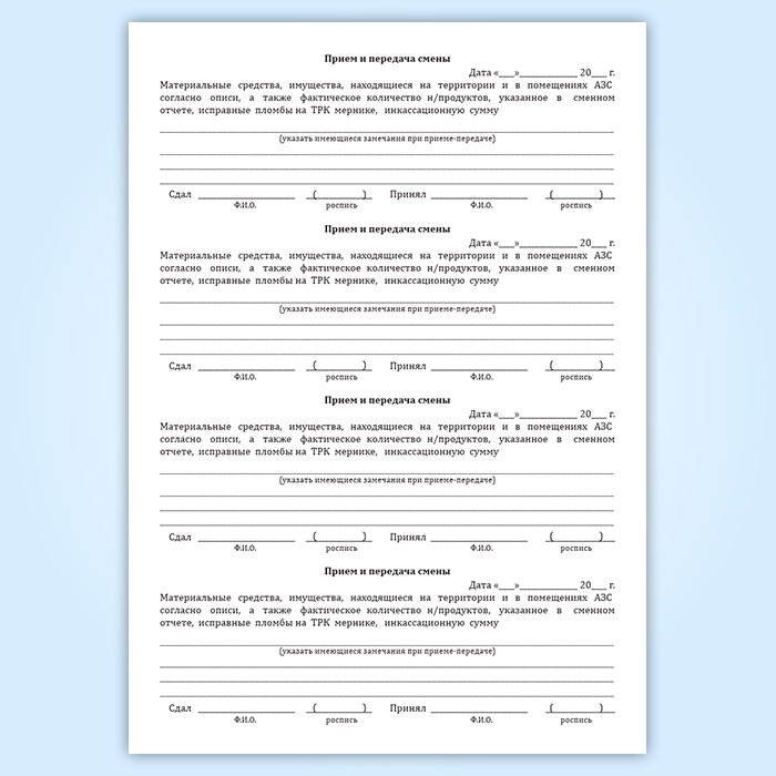 Журнал приема и передачи смен на АЗС в Ачинске купить