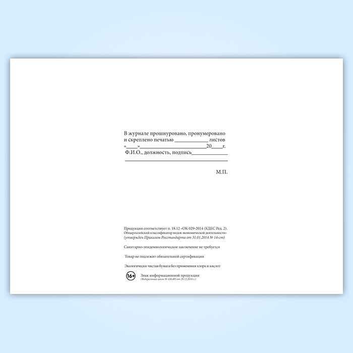 Вы получаете печатную продукцию прошнурованной и c местом для вашей печати в соответствии с действующими нормативными документами: