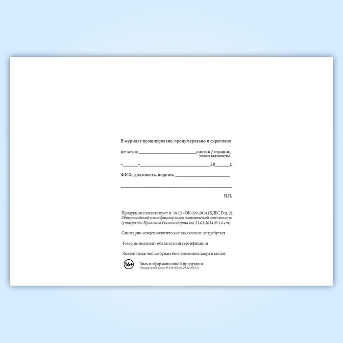 Вы получаете печатную продукцию прошнурованной и c местом для вашей печати в соответствии с действующими нормативными документами: