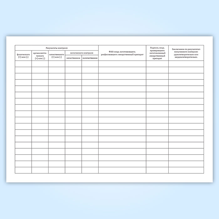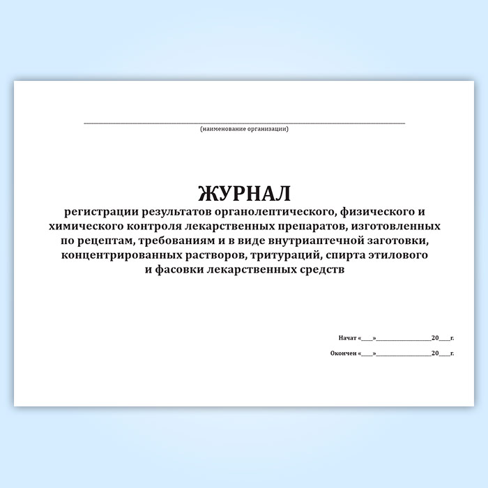 Журнал регистрации результатов органолептического, физического и химического контроля лекарственных препаратов, изготовленных по рецептам, требованиям и в виде внутриаптечной заготовки, концентрированных растворов, тритураций, спирта этилового и фасовки лекарственных средств в Ачинске купить