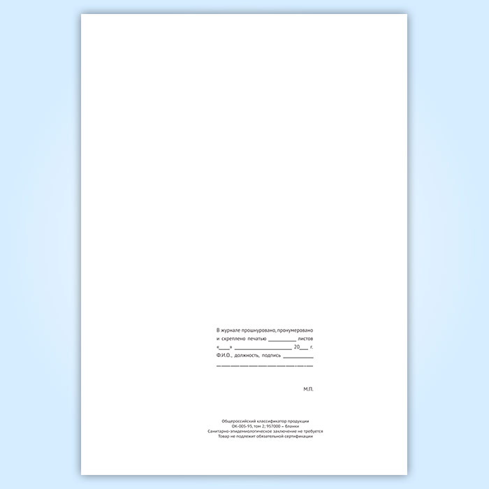 Вы получаете печатную продукцию прошнурованной и c местом для вашей печати в соответствии с действующими нормативными документами: