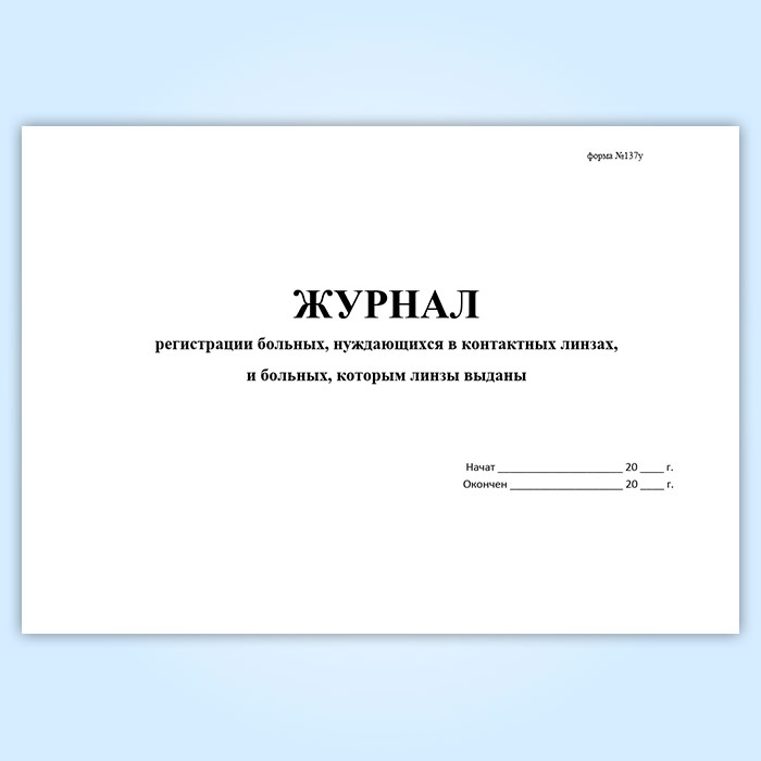 Журнал регистрации больных, нуждающихся в контактных линзах, и больных, которым линзы выданы (форма № 137/у) в Ачинске купить