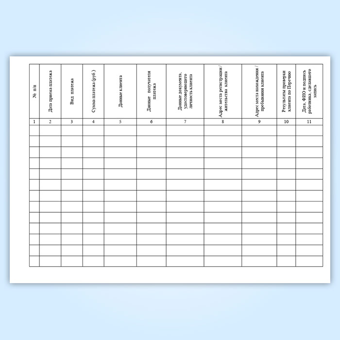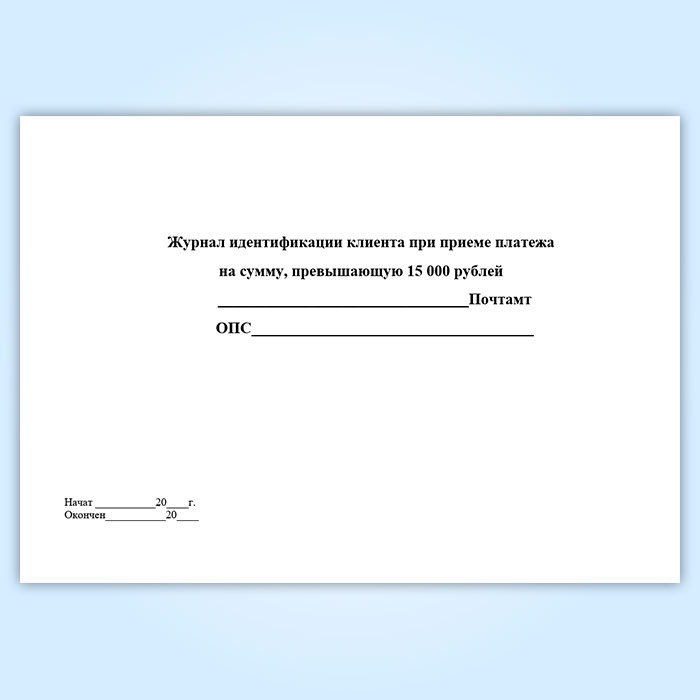Журнал идентификации клиента при приеме платежа на сумму, превышающую 15 000 рублей в Ачинске купить