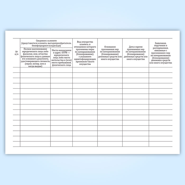 Журнал учета принятых мер по замораживанию (блокированию) денежных средств или иного имущества клиентов в Ачинске купить