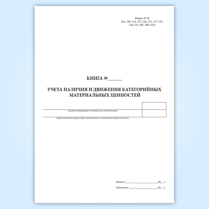 Книга учета наличия и движения категорийных материальных ценностей (форма 10) в Ачинске купить
