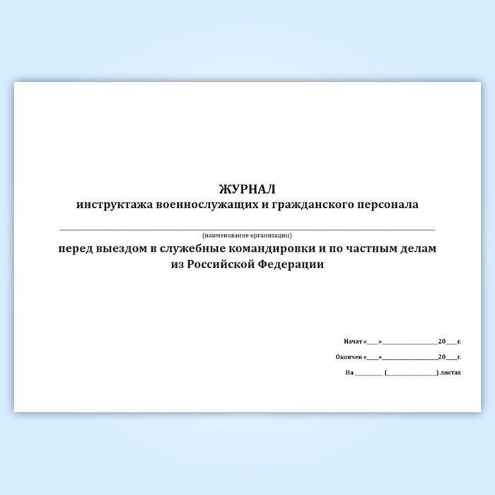 Журнал инструктажа военнослужащих и гражданского персонала перед выездом в служебные командировки и по частным делам из Российской Федерации в Ачинске купить