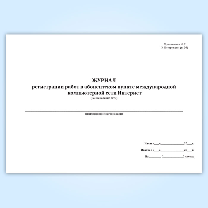 Журнал регистрации работ в абонентском пункте международной компьютерной сети Интернет в Ачинске купить