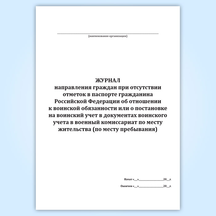 Журнал направления граждан при отсутствии отметок в паспорте гражданина Российской Федерации об отношении к воинской обязанности или о постановке на воинский учет в документах воинского учета в военный комиссариат по месту жительства (по месту пребывания) в Ачинске купить