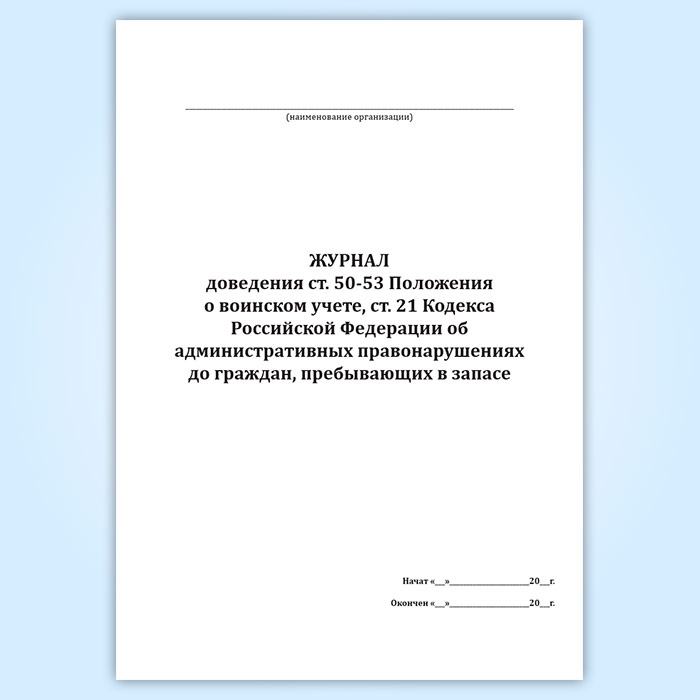 Журнал доведения ст. 50-53 Положения о воинском учете, ст. 21 Кодекса Российской Федерации об административных правонарушениях до граждан, пребывающих в запасе в Ачинске купить