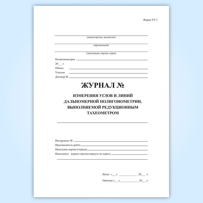 Журнал измерения углов и дальномерной полигонометрии, выполняемой редукционным тахеометром (форма УТ-7) в Ачинске купить
