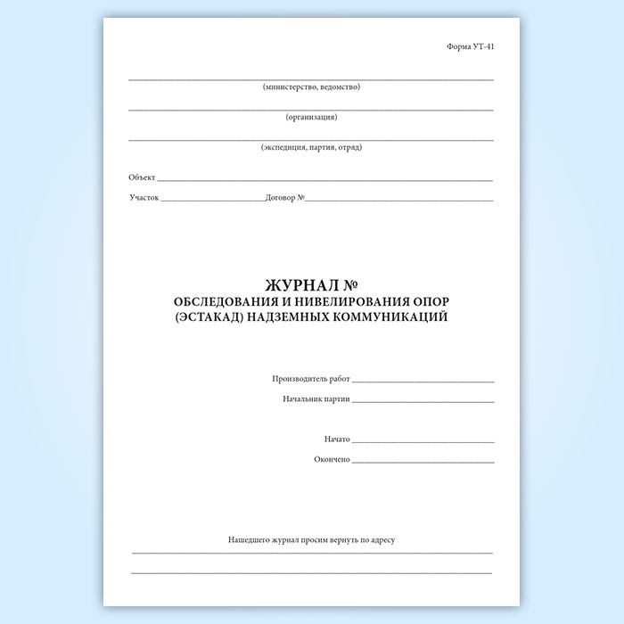 Журнал обследования и нивелирования опор (эстакад) надземных коммуникаций (форма УТ-41) в Ачинске купить
