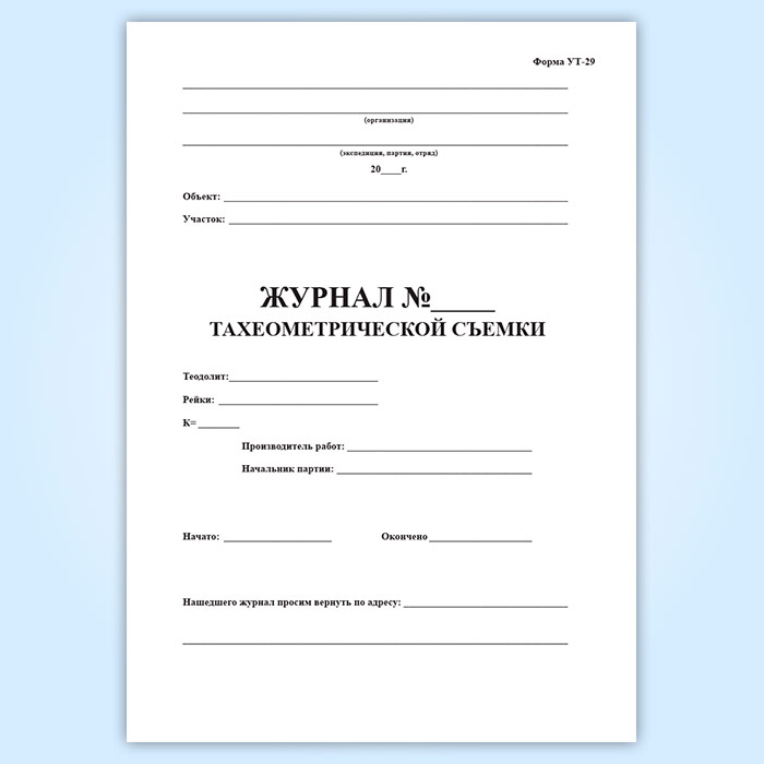 Журнал тахеометрической съемки (форма УТ-29) в Ачинске купить