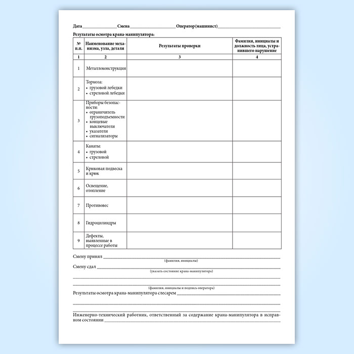 Вахтенный журнал приема-сдачи смен машинистами крана-манипулятора в Ачинске купить