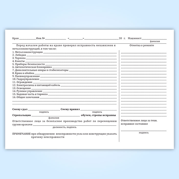 Вахтенный журнал г/п крана в Ачинске купить