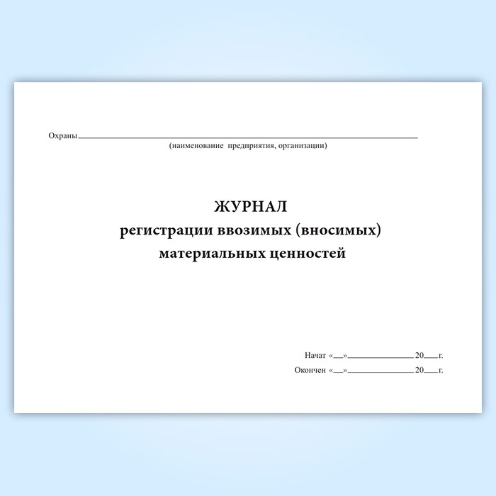 Журнал регистрации ввозимых (вносимых) материальных ценностей в Ачинске купить