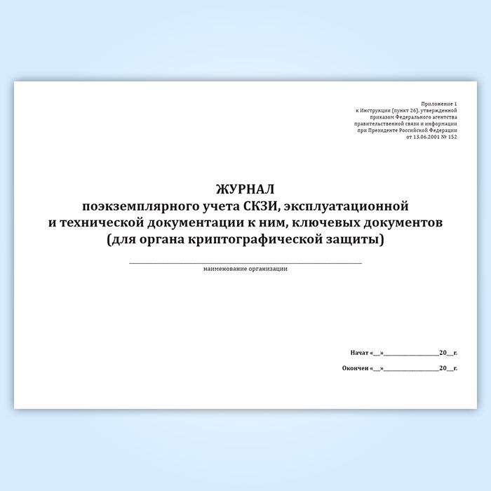 Журнал поэкземплярного учета СКЗИ, эксплуатационной и технической документации к ним, ключевых документов (для органа криптографической защиты) в Ачинске купить