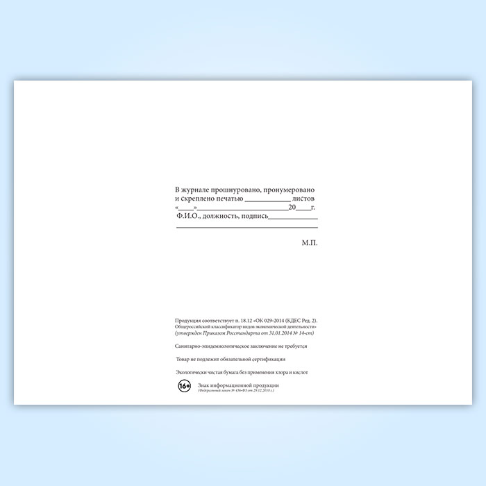 Вы получаете печатную продукцию прошнурованной и c местом для вашей печати в соответствии с действующими нормативными документами: