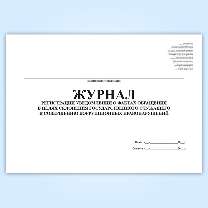 Журнал регистрации уведомлений о фактах обращения в целях склонения государственного служащего к совершению коррупционных правонарушений в Ачинске купить