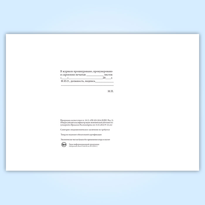 Вы получаете печатную продукцию прошнурованной и c местом для вашей печати в соответствии с действующими нормативными документами: