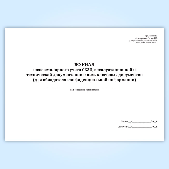 Журнал поэкземплярного учета СКЗИ, эксплуатационной и технической документации к ним, ключевых документов (для обладателя конфиденциальной информации) в Ачинске купить