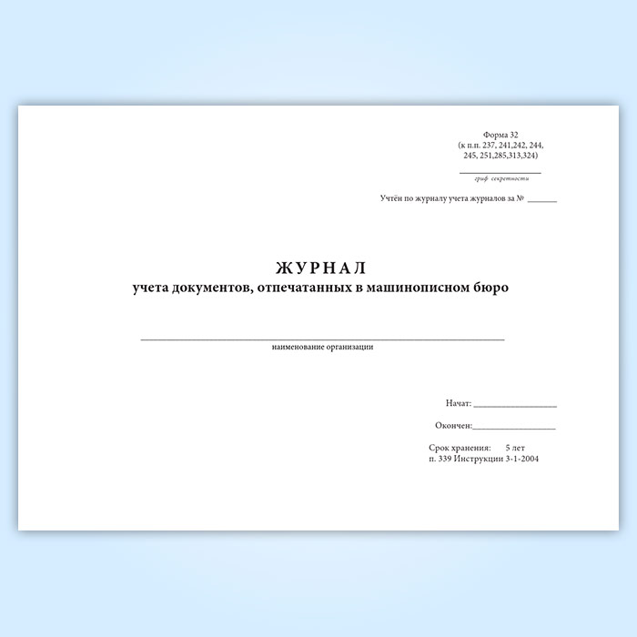 Журнал учета документов, отпечатанных в машинописном бюро (форма 32) в Ачинске купить