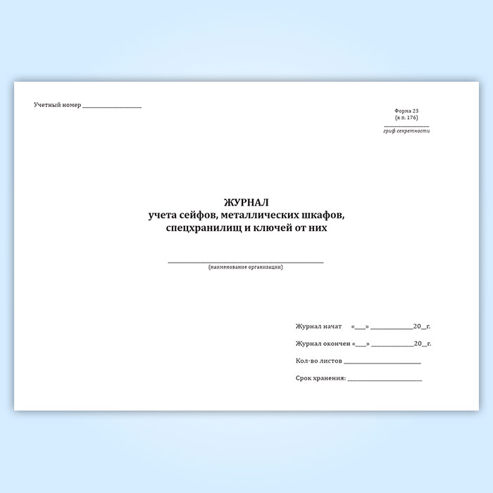 Журнал учета сейфов, металлических шкафов, спецхранилищ и ключей от них в Ачинске купить