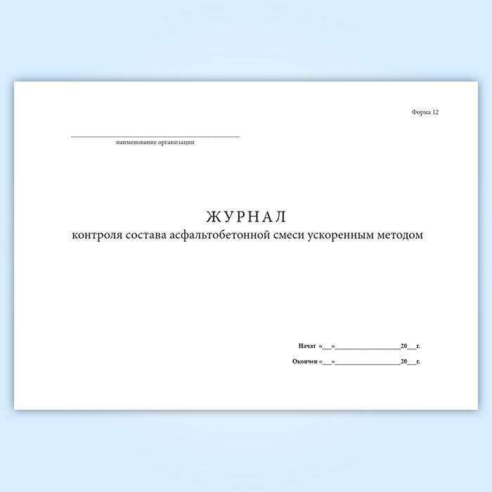 Журнал контроля состава асфальтобетонной смеси ускоренным методом (форма 12) в Ачинске купить