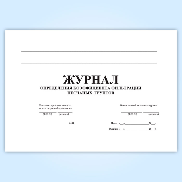 Журнал определения коэффициента фильтрации песчаных грунтов в Ачинске купить