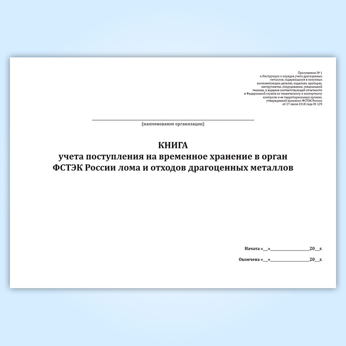 Книга учета поступления на временное хранение в орган ФСТЭК России лома и отходов драгоценных металлов в Ачинске купить