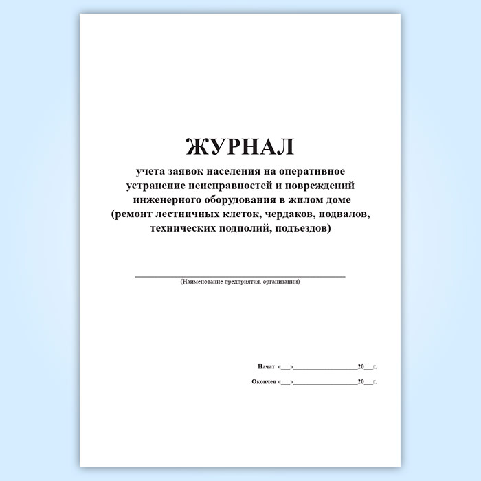 Журнал учета заявок населения на оперативное устранение неисправностей и повреждений инженерного оборудования в жилом доме ремонт лестничных клеток, чердаков, подвалов, технических подполий, подъездов в Ачинске купить