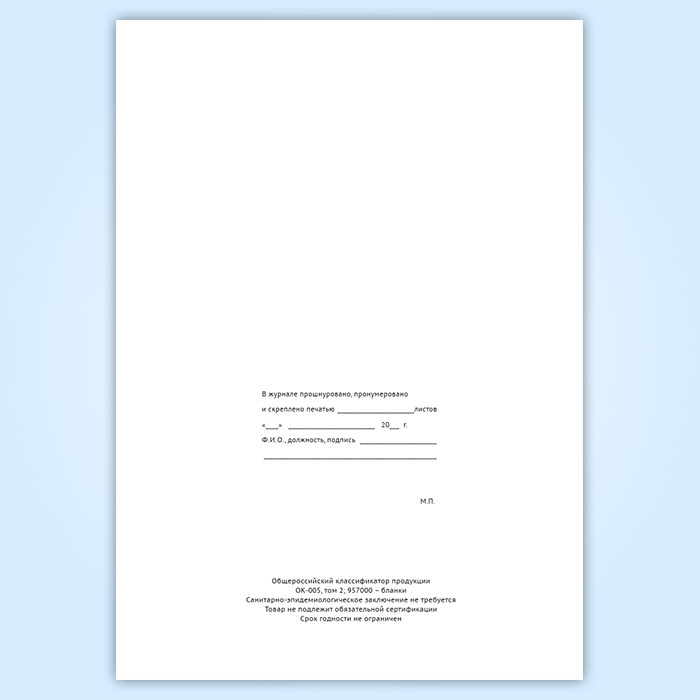 Вы получаете печатную продукцию прошнурованной и c местом для вашей печати в соответствии с действующими нормативными документами:
