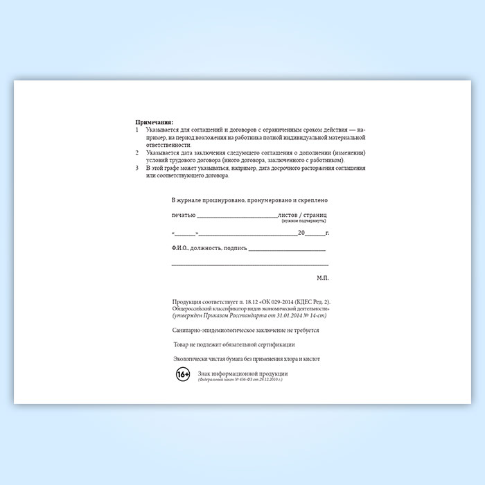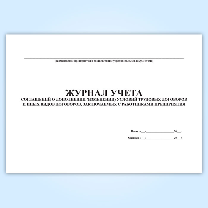 Журнал учета соглашений о дополнении (изменении) условий трудовых договоров и иных видов договоров, заключаемых с работниками предприятия в Ачинске купить