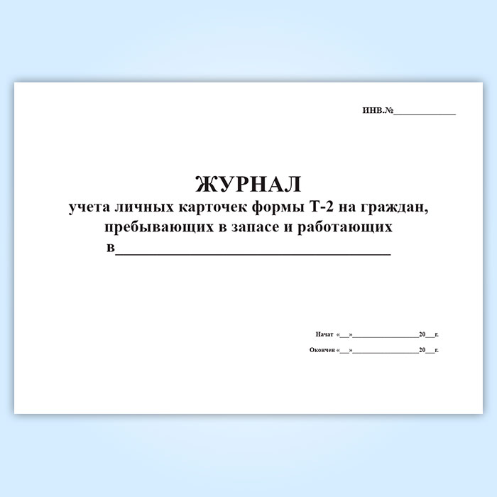 Журнал учета личных карточек формы Т-2 на граждан, пребывающих в запасе и работающих в Ачинске купить