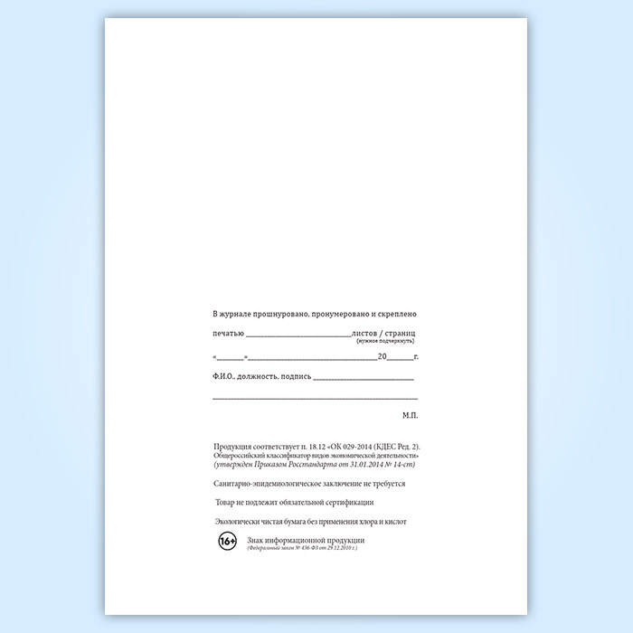Вы получаете печатную продукцию прошнурованной и c местом для вашей печати в соответствии с действующими нормативными документами: