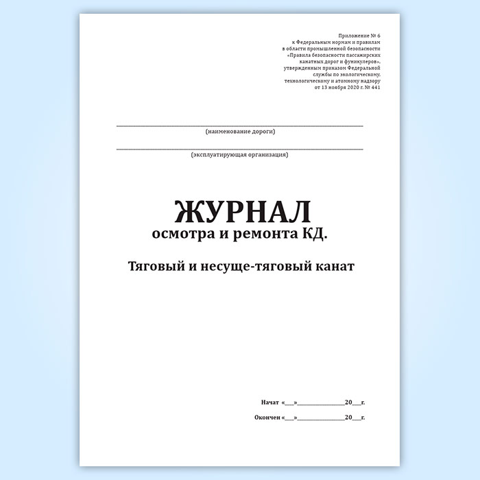 Журнал осмотра и ремонта канатной дороги. Тяговый и несуще-тяговый канат (форма № 2) в Ачинске купить