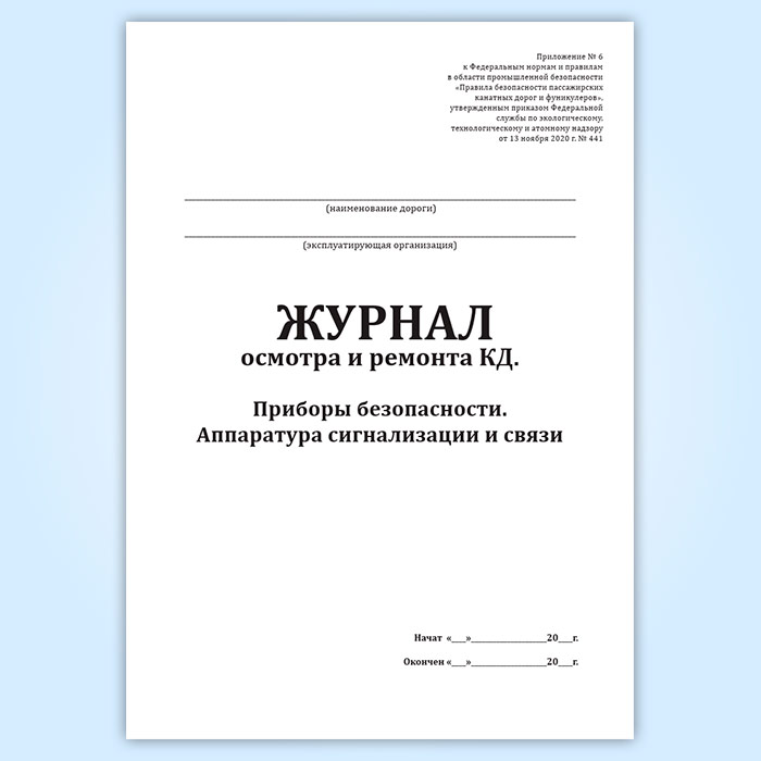 Журнал осмотра и ремонта канатной дороги. Приборы безопасности. Аппаратура сигнализации и связи (форма № 9) в Ачинске купить