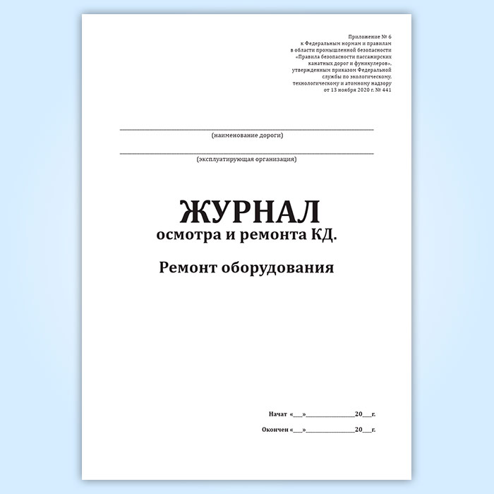 Журнал осмотра и ремонта канатной дороги. Ремонт оборудования (форма № 10) в Ачинске купить